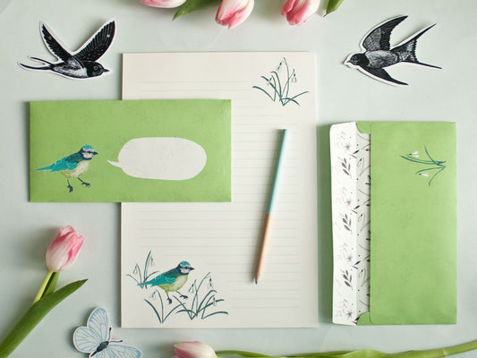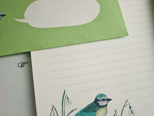 Briefpapier Set Meise mit kleinem Schönheitsmakel