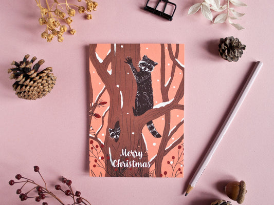 Weihnachtskarte Waschbären (engl.)