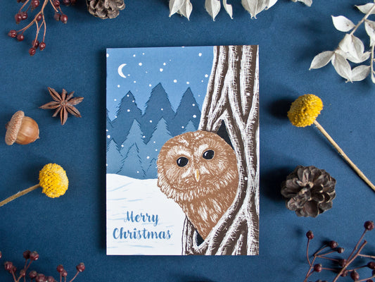 Weihnachtskarte Waldkauz (engl.)