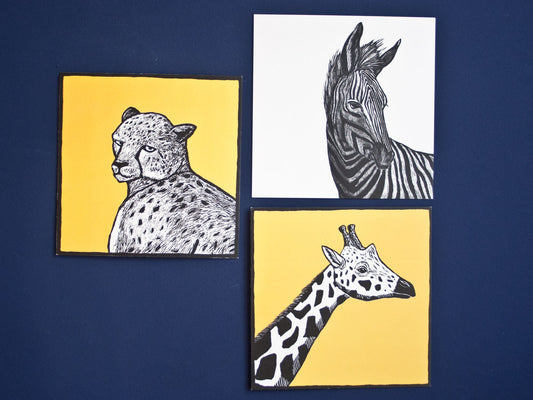 Quadratische Postkarte Katze (gelber Hintergrund)